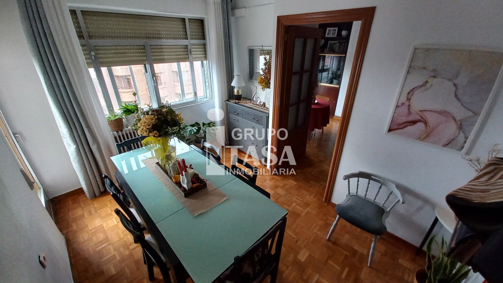 Piso céntrico con una superficie de 112m2 consta de 4 dormitorios, salón cuadrado + comedor y salida a un balcón bonito, 2 baños completos, uno de ducha y otro con bañera , sanitarios nuevos, Cocina con electrométricos Nuevos, calefacción Individual por bomba de Calor y Frio ,ascensor y el portal no tiene Barreras arquitectónicas.